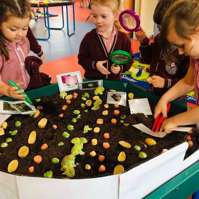In both Nursery and Reception, children follow four main topics throughout the year, which include appropriate sub-topics to further enhance learning. Each topic is carefully selected to facilitate the key knowledge we want children to learn throughout the year. These topics are relevant to the real world and help to provide context to what is happening around them, for example the seasons or annual celebrations. We use our children’s interests as a stimulus for our planning and provision enhancements. Staff tune in to what children are currently interested in and use this to enhance their play and learning opportunities. We also take part in ‘Wonderful Wednesday’ each week as a form of character development. We aim to enrich learning through hands-on activities such as cooking, gardening and dancing.