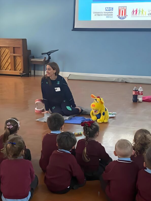 The local dentist visits Eaton Park each year to share key information about dental health and hygiene.