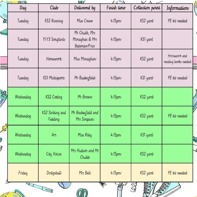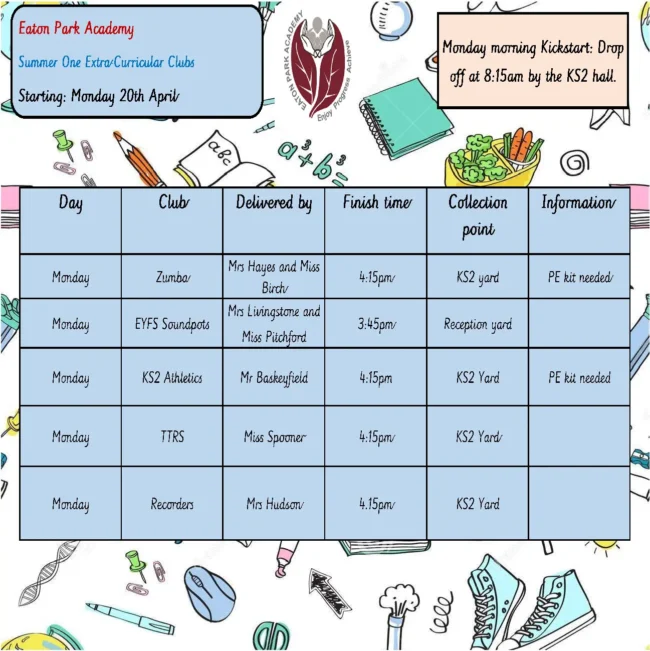Our clubs do have specific numbers of allocated places and allocation of clubs is done fairly to ensure all pupils have access to our extra-curricular offer throughout the year. Our clubs are ran by Eaton Park staff.